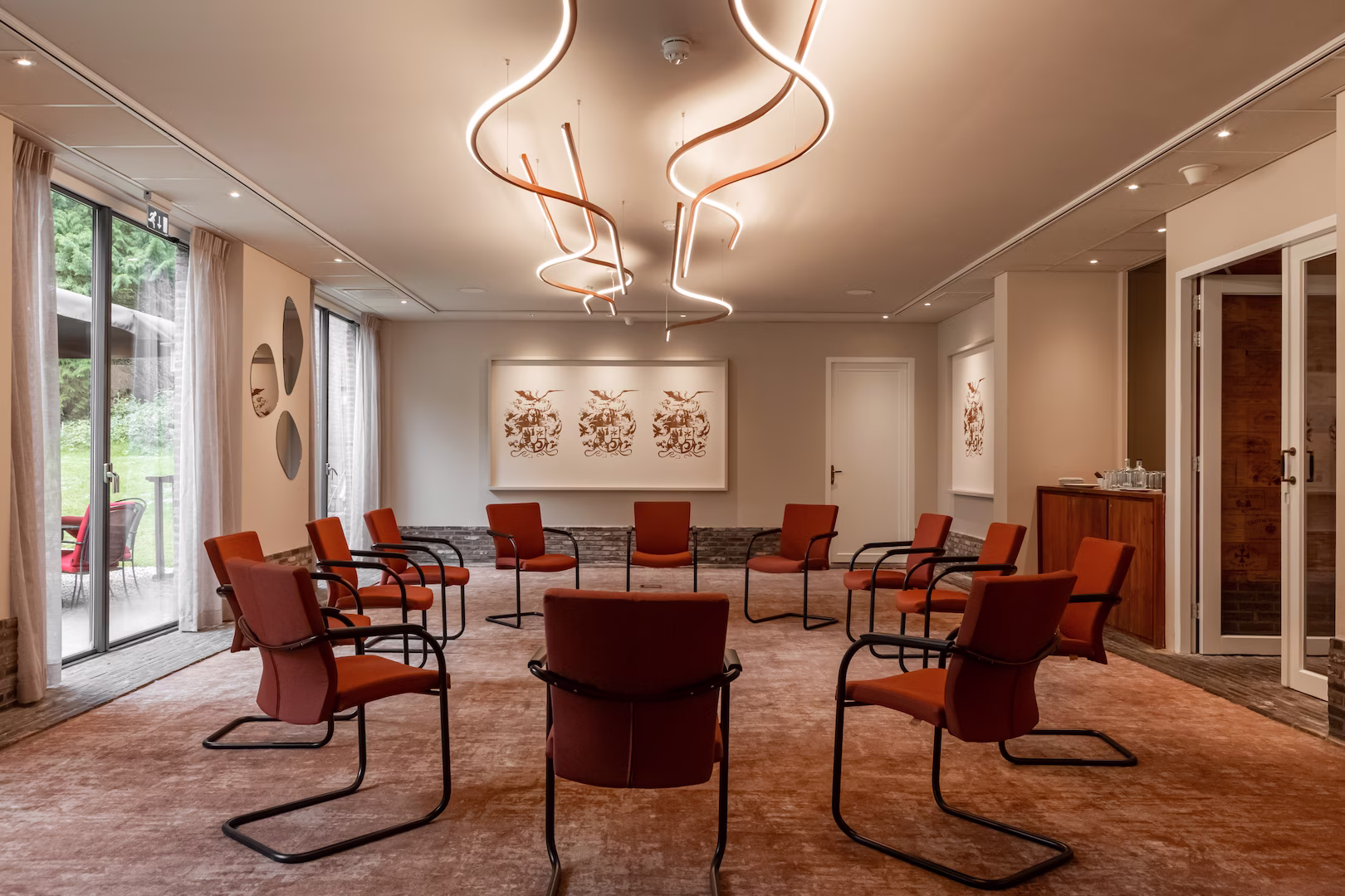 In het Landhuis beschikken wij over vier vergaderzalen, ieder met een eigen privéterras. Dit biedt niet alleen comfort, maar ook ruimte om in alle rust te overleggen of te genieten van een pauze in de buitenlucht. Onze vergaderruimtes variëren van een Boardroom voor maximaal zes personen tot twee zalen op de begane grond van circa 75 m². De Vijverbergh, met een oppervlakte van 95 m², beschikt over een prachtige tuin en een terras op het zuiden.